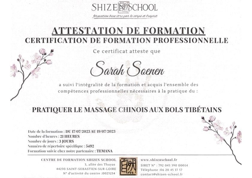 Juillet 2023 : Certification : pratiquer le massage chinois aux bols Tibétains