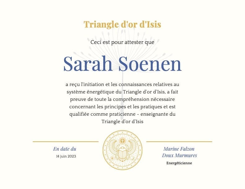 Juin 2023 :Certification : soin énergétique du triangle d’or d'Isis